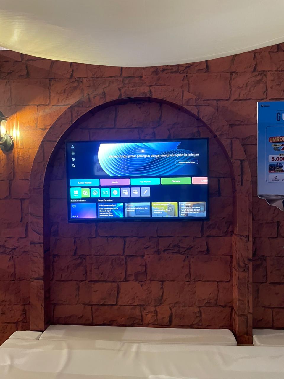 Kedua, acara manasik akbar biasanya melibatkan penggunaan *ballroom* hotel atau gedung serbaguna yang luas. Satu layar di depan tidak akan cukup. Kami memiliki stok TV LED dalam jumlah besar yang bisa Anda sebar di berbagai titik ruangan. Jadi, jamaah di barisan paling belakang pun tetap bisa mengikuti materi dengan nyaman tanpa harus berdesak-desakan ke depan.